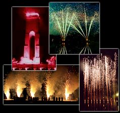 Fontänen, Illumination von Gebäuden, Wasserfälle, Vulkane und Römische lichter versetzten Sie in ein passendes Ambiente voller Licht und Farbenpracht.